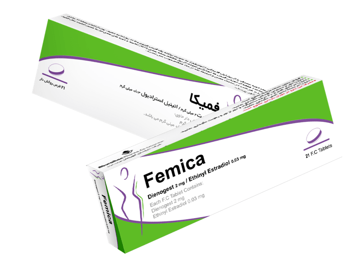 فمیکا® جدیدترین نسل از قرص های پیشگیری از بارداری می باشد و همانند سایر قرص های پیشگیری از بارداری ترکیبی حاوی یک جزء پروژسترونی و یک جزء استروژنی است. فمیکا® حاوی 2 میلی گرم داینوژست به عنوان جزء پروژسترونی و 03/0 میلی گرم اتینیل استرادیول به عنوان جزء استروژنی می باشد.