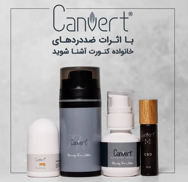- رول موضعی Canvert® PMS: محصول موضعی حاوی کانابیدیول (CBD) به همراه عصارههای گیاهی (زنجبیل، اسطوخودوس) و عاملی گرمکننده (وانیلیل بوتیل اتر).