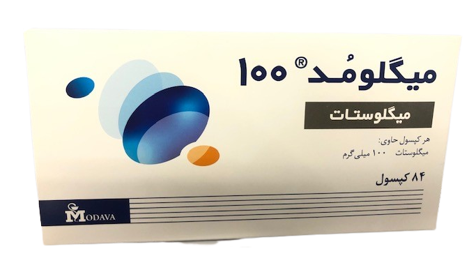 میگلومد® کپسولی سفید رنگ شامل ۱۰۰میلی گرم ماده موثره میگلوستات و هر جعبه محتوی شش بلیستر 14تایی می باشد.