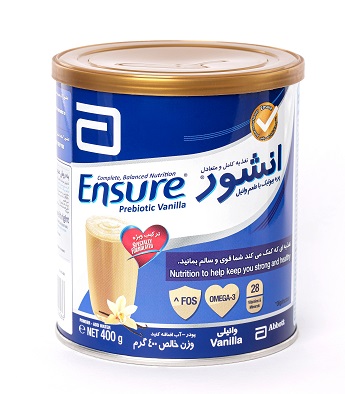 انشور® پره بیوتیک با طعم وانیل، محصولی از کمپانی ابوت، یک منبع کامل و متوازن شده غذایی برای تغذیه بزرگسالان می باشد. این فرآورده با فراهم کردن مواد مغذی اساسی، جهت کمک به سلامت بدن و حفظ وزن طراحی شده است. انشور حاوی ٢٨ نوع مواد معدنی و ویتامین های ضروری، فروکتوالیگوساکارید به عنوان یک ماده پره بیوتیک و امگا ٣ می باشد. این فرآورده حاوی مقادیر بالای ویتامین C و ویتامین E به عنوان آنتی اکسیدان، کلسیم و ویتامین D می باشد. انشور مناسب افراد دارای کاهش وزن و یا در معرض خطر کاهش وزن، افراد دارای مشکلات قلبی وعروقی، مشکلات سیستم ایمنی و استخوانی، افراد مسن کم غذا یا با سختی بلع، افراد بستری و یا در حال گذراندن دوره نقاهت میباشد. همچنین این محصول به دلیل ایمنی بالا و اثربخشی مناسب هم برای تغذیه دهانی و هم برای تغذیه با لوله مناسب میباشد.